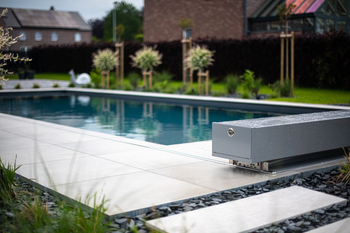Minimal. Die flache Konstruktion und die grosse Auswahl an Farben sorgen dafür, dass sich die Abdeckung ruhig und harmonisch in die Schwimmbadlandschaft einfügt.